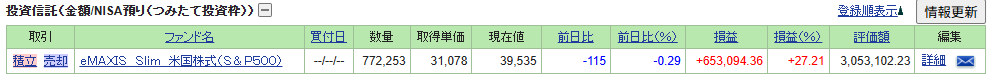 2年間で+653,094円のプラスで損益は+27.21%増と大きく増えています。S&P500の年平均トータルリターンは10%程なので平均を大きく上回る上昇率です。