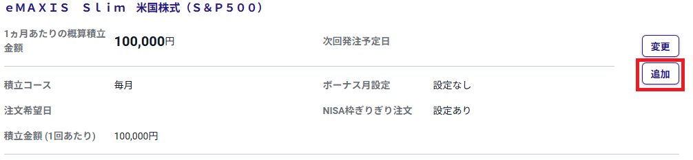 毎月10万円ずつ積み立てれば年間120万円に到達しますが、「ボーナス設定」を使えば、一度にまとまった金額を投資することも可能です。